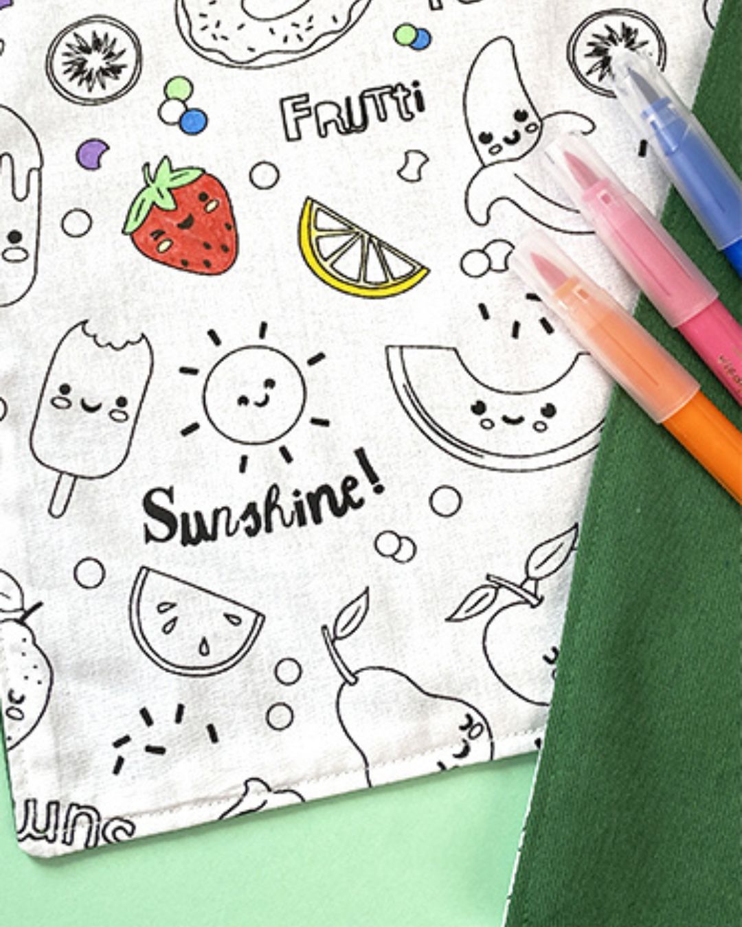Voici un tuto couture spécial débutant pour réaliser un joli set de table que vos enfants pourront colorier et offrir à l’école en fin d’année ! Pour set de table qui ne bouge pas, utilisez des feutres non lavables, vous savez ceux que vous interdisez à vos enfants habituellement !