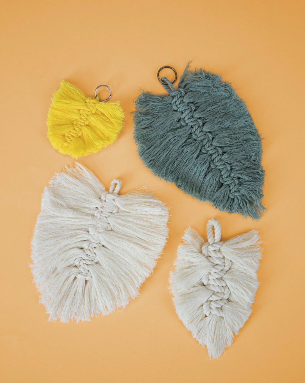 Ce porte-clé en macramé, c’est le projet idéal pour réaliser un cadeau fait-main en un tour de main en apprenant un nœud simple au macramé.