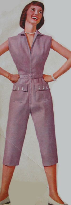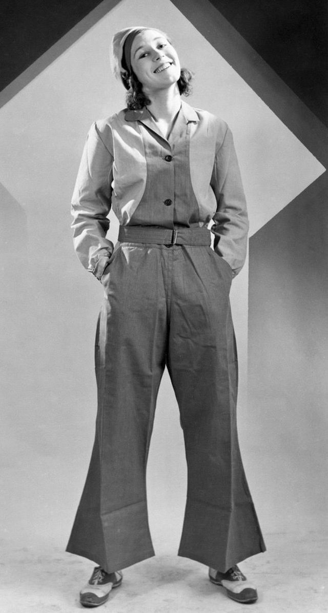 À l’origine, la forme combinaison pantalon était un habit de travail développé en 1919, pour les usines. Elle était aussi la tenue type de certaines professions, de par sa durabilité et son côté fonctionnel.