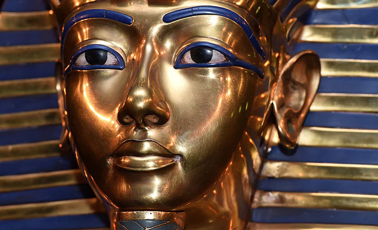 La couleur bleue apparaît dès l’Antiquité, dans la déco et les vêtements. Puis, qualidiée de porte-bonheur, elle orne les masques funéraires, les tenues et le maquillage des acteurs de l’Egypte Ancienne, avec la pierre semi-précieuse : le Lapiz-Lazuli. Elle s’invite sur les porcelaines, en Chine, dès le 8ème siècle et habille les fenêtres des cathédrales Européennes, au Moyen-Age.