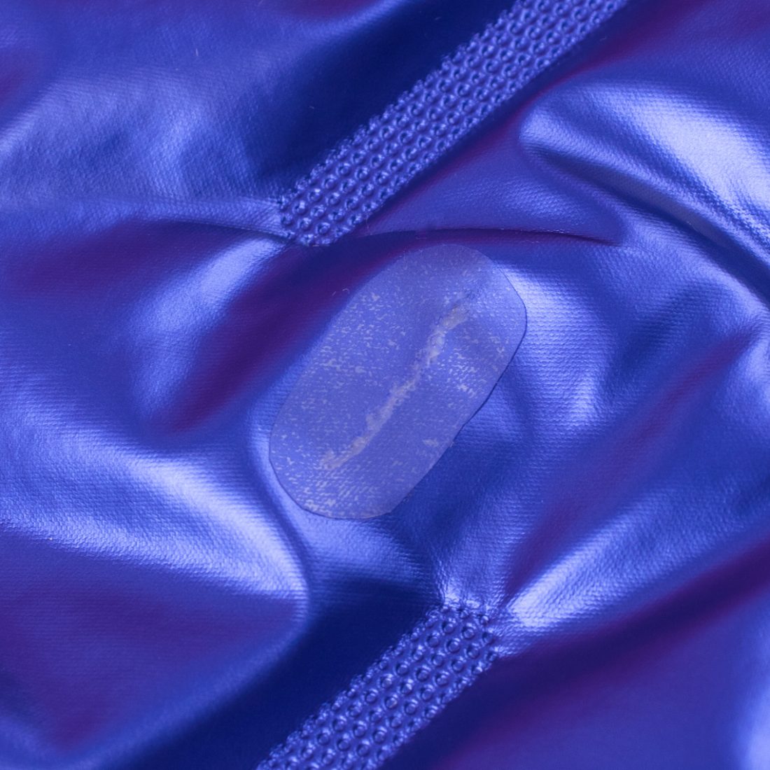 - Positionnez le patch sur l’accroc en vérifiant qu’il est assez grand, il doit recouvrir entièrement le trou.