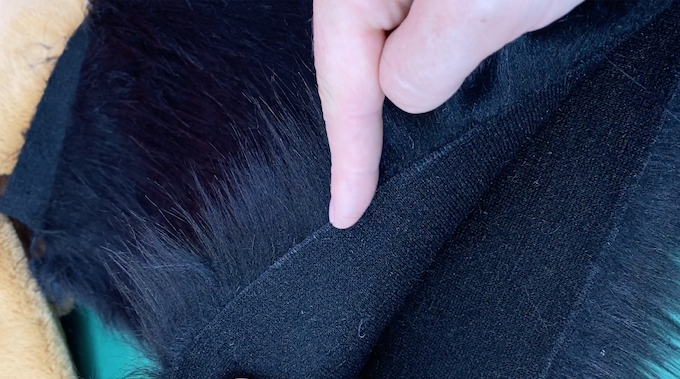 👉 Le poil doit toujours tomber vers le bas sur le vêtement fini (comme sur un animal).