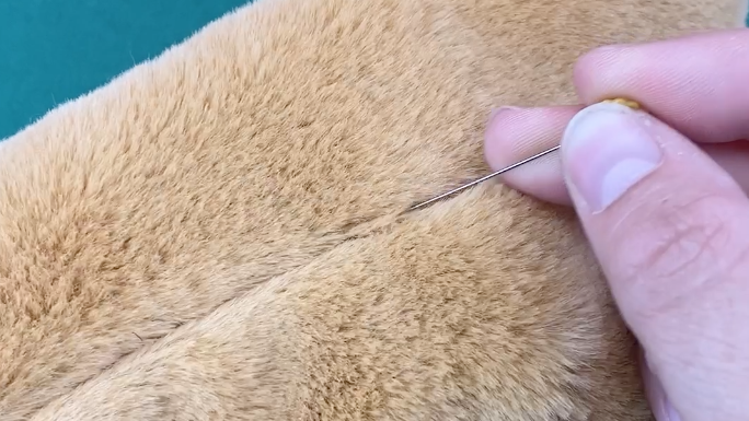 La fausse fourrure est épaisse : un point trop serré risquerait de tirer sur la matière.