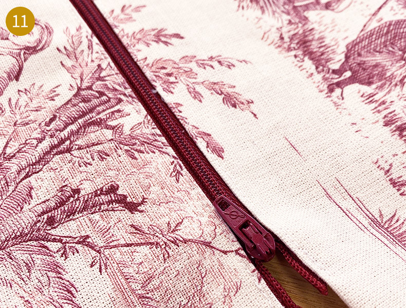 BON À SAVOIR : Si vous n’avez pas de fermeture éclair à la bonne taille, vous pouvez tout à fait, en utiliser une plus grande et la couper par la suite. Réalisez alors, un point à la main pour bloquer la fermeture ou ajoutez un arrêt ou une griffe pour fermeture éclair.