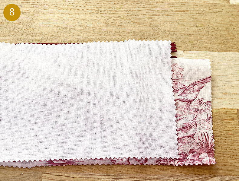 Réalisez la même chose pour l’autre côté en plaçant votre tissu endroit contre endroit