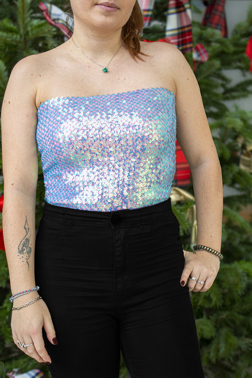 Tadaaam ! Votre bustier à sequins est fin prêt pour braver les cotillons et les reflets de la boule à facettes ! ✨