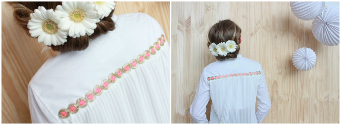 Grande tendance de l’été, le plissé est sur tous les podiums et dans vos magasins préférés ! Si vous n’avez pas trouvé l’inspiration dans notre article spécial plissé, voici un pas à pas custo qui devrait vous plaire. L’idée est de transformer le dos d’une chemise toute simple en un pan de crêpe plissé vaporeux et subtilement transparent, le tout fini avec un galon coloré.