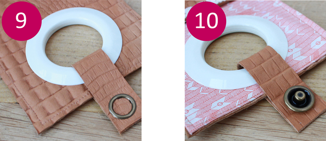 Positionnez le chapeau de l’œillet sur la bande de cuir.