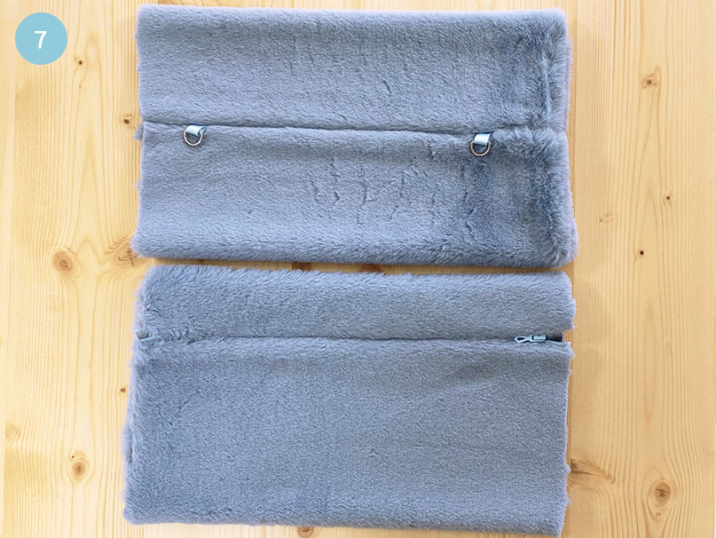 Faites de même avec votre pièce doublure (avec les anneaux en D). Vous avez donc 2 tubes.