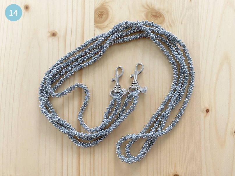 Nouez les extrémités entre elles aux mousquetons de manière à obtenir une sangle double. Votre sangle amovible est prête !