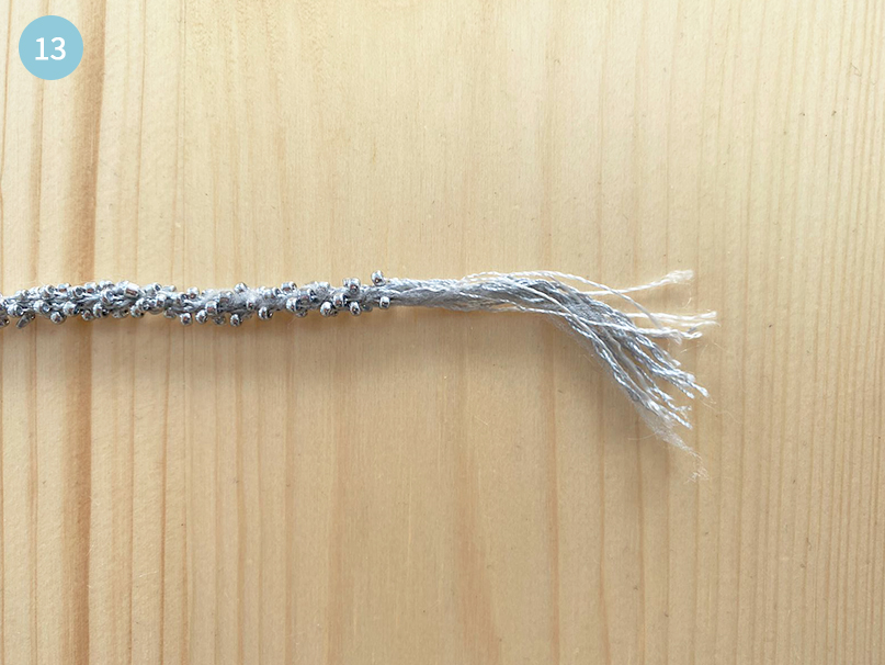 Coupez en deux votre galon perles. A chaque extrémité, sur 5 cm, retirez les perles.