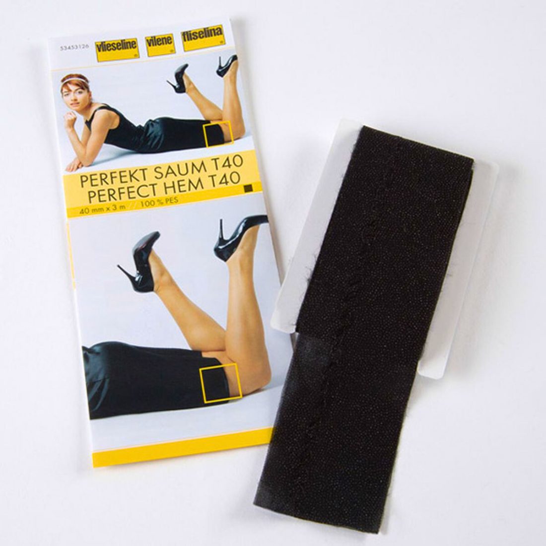 Il s’agit d’une bande thermocollante composée de 2 tissus fins posées l’une sur l’autre, chacune avec un côté thermocollant vers l’extérieur et reliées entre elles avec un point invisible. La bande maintiendra les ourlets de façon stable et durable dans le temps. Elle est lavable jusqu’à 30 ºC, programme linge délicat, résistant au lavage en pressing. (Existe en blanc ou en noir et vendue au mètre ou par 3 mètres).