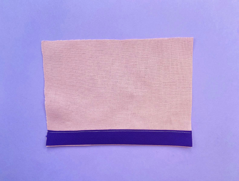 - Coudre avec un biais invisible : Ouvrez le biais au fer et pliez-le en 2 sur la longueur, disposez le bord ouvert du biais sur le bord libre de l’ourlet, endroit contre endroit et piquez à 1 cm du bord. Repassez la valeur de couture vers le biais et réduisez la valeur de couture à 2 mm. Repassez le biais vers l’envers de l’ouvrage, en veillant à ce qu’il ne soit plus du tout visible sur l’endroit. Piquez à 2 mm du bord du biais.