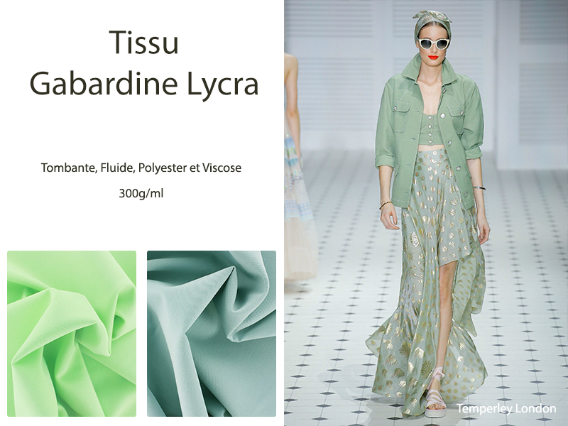 Facile à travailler et ultra confortable, la gabardine lycra et/ou satinée donnera à vos tenues un aspect chic naturel.