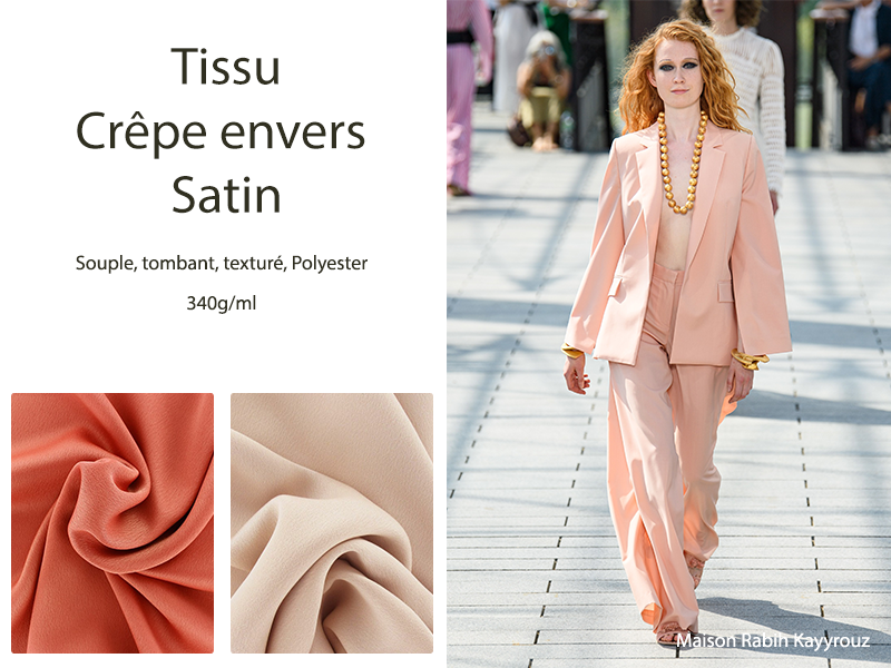 On surfe sur la tendance « tayloring » tout droit venue des années 70. Pas fan des costumes deux pièces ? On adopte simplement la veste blazer, mais surtout le tissu crêpe envers satin. Un tissu tombant et légèrement texturé sur un côté. Une étoffe qui vous permettra également de fabriquer de sublimes robes.