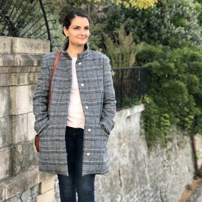 Le patron Roma par Fibre Mood, le manteau officier Tromso d’Anne Kerdilès Couture, la jupe cocooning Perrine par I am Patterns et la sublime blouse Louise d’Ikatee.