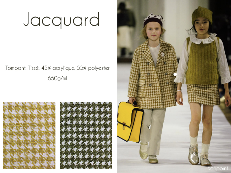 Nous vous avions prévenu ! Le carreau sous toutes ses forme s’affiche, de la même façon, en pied de poule ! Pourquoi pas sur du jacquard, pour de l’habillement enfant, ou bien de la décoration.