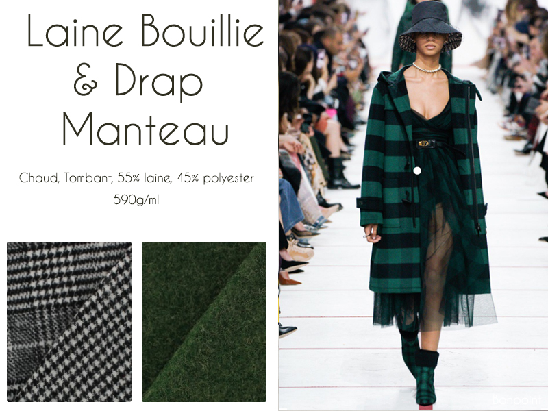 Enfin, comme indiqué plus haut, le mois d’octobre nous aide à transiter d’une météo douce à un air plus frais. L’occasion pour vous de sélectionner l’un de nos jolis drap manteau, mais aussi la superbe laine bouillie !