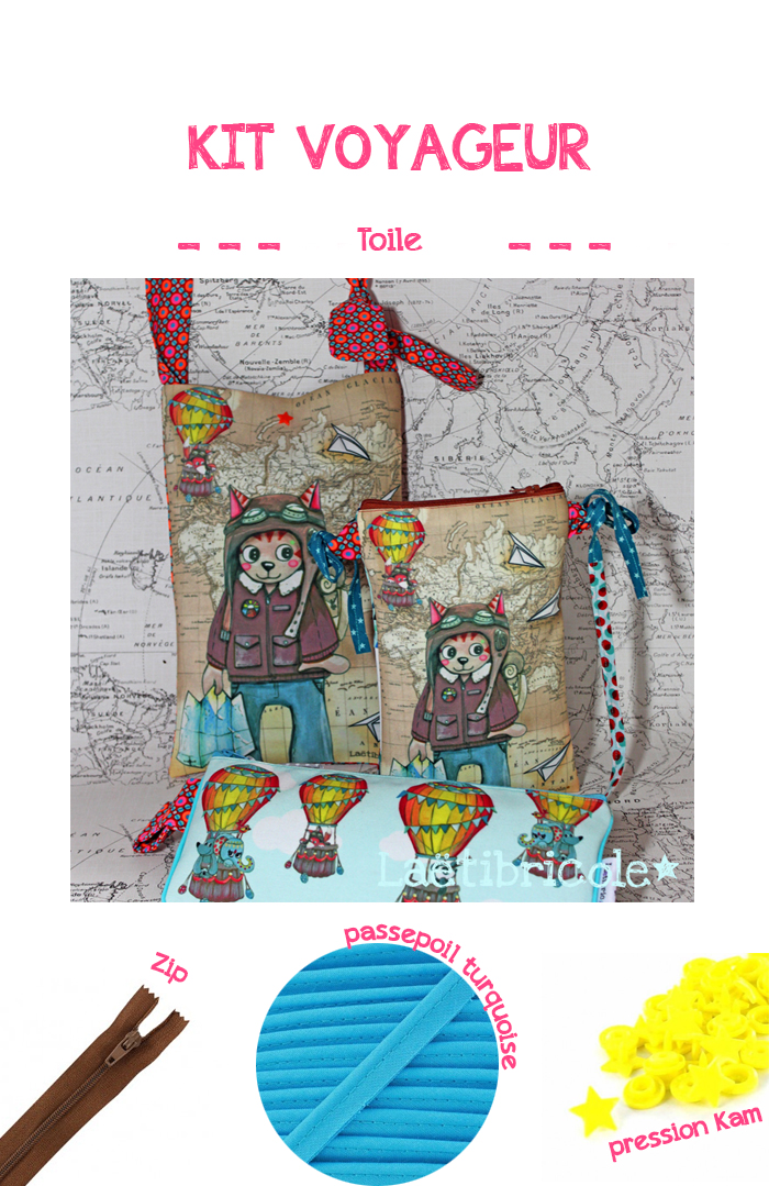 Imprimé avec des fils et encres sans solvants sur une toile polyester Oeko-Tex, ce coupon sera parfait pour créer le célèbre kit de voyage imaginé par Laëtitia Gheno pour abriter les trésors de sa petite fille.