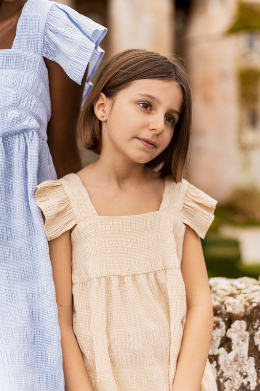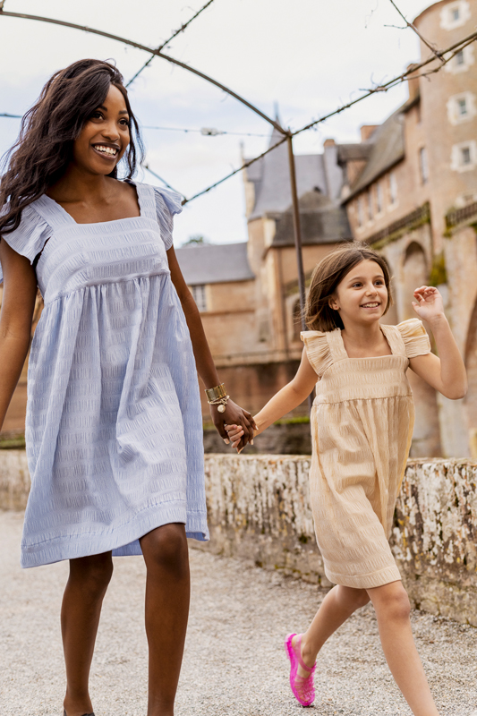 On aime sa forme babydoll et ses manchons à volants. On aime surtout pouvoir la porter en binôme avec la mini personne de son choix, grâce à la version Initiales B.B enfant !