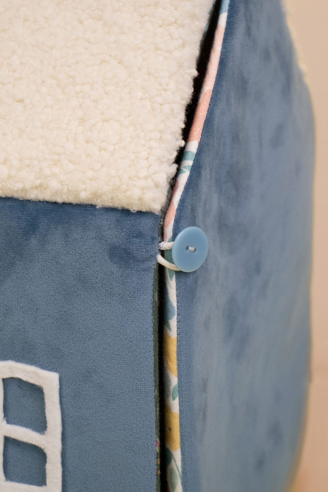 L’astuce en + : Nous avons choisi de fermer la maison avec des boutons et un élastique, mais vous pouvez les remplacer par des pressions ou de l’auto-agrippant.