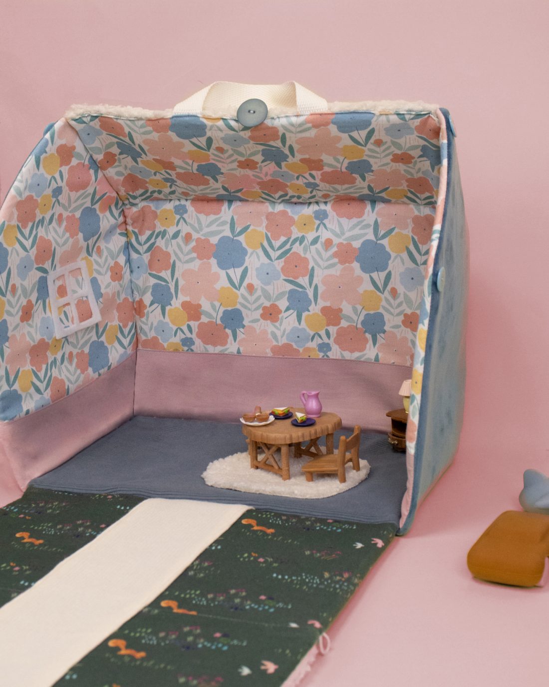 Voici notre tuto pour réaliser cette adorable maison de poupée en tissu nomade et personnalisable à l’infini ! Des heures de jeux en perspective avec cette maison de poupée nomade à emporter partout ! Les dimensions de cette maison sont particulièrement adaptées aux petits personnages comme les Sylvanians ou poupée jusqu’à une quinzaine de centimètres.