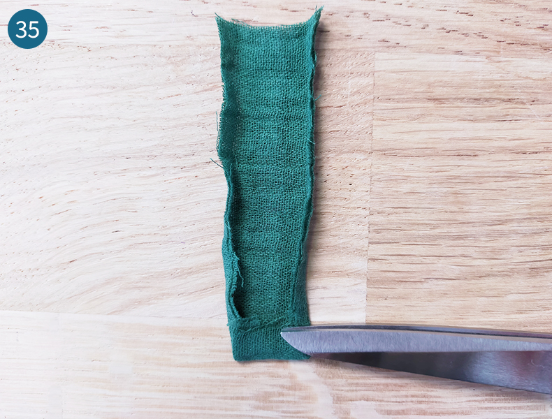 Pour créer les queues, faites un rentré de 1 cm vers l’envers (photo 35).