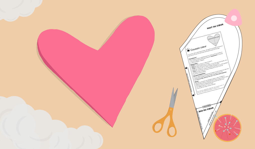 - Le patron du coussin-cœur (attention : il est important de respecter ce patron, dessiné par un médecin pour avoir la bonne courbure)