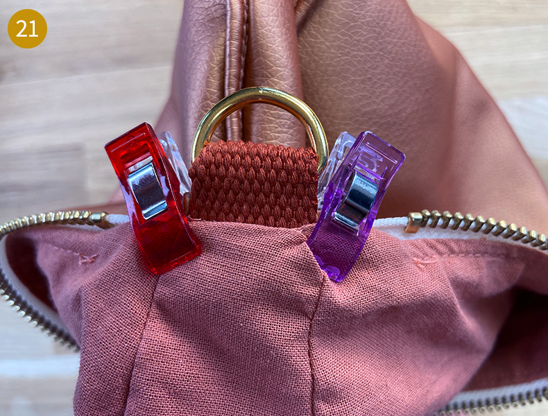 Insérez votre anse dans chaque anneau en D et réalisez une piqure à 0,5 cm du bord.