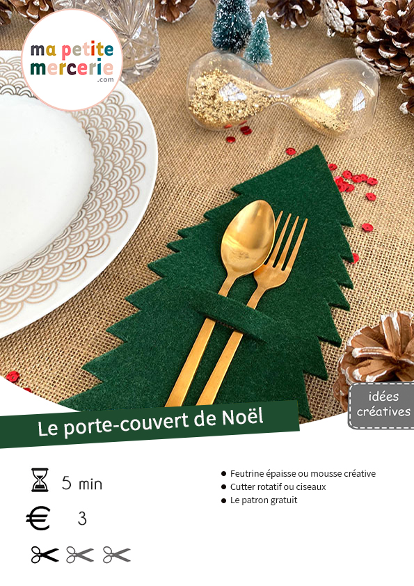 Nous vous proposons aujourd’hui de créer un joli porte-couvert pour décorer votre table pendant les fêtes de Noël ! Ça va faire sensation, c’est garanti.