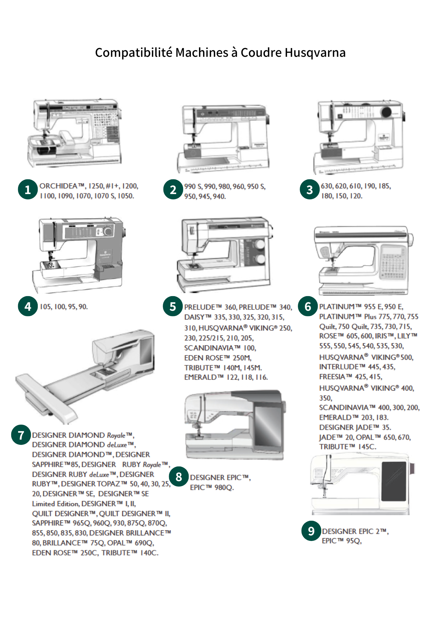 Bonjour pour le moment notre article vous présente les pieds pour machine à coudre que nous proposons sur la boutique : les marques de mercerie générique telles que Bohin ou Couture loisirs, et les marques Pfaff et Husqvarna Viking. Nous prenons bonne note de votre commentaire pour améliorer prochainement notre article sur les pieds machine à coudre. Bonne journée,
