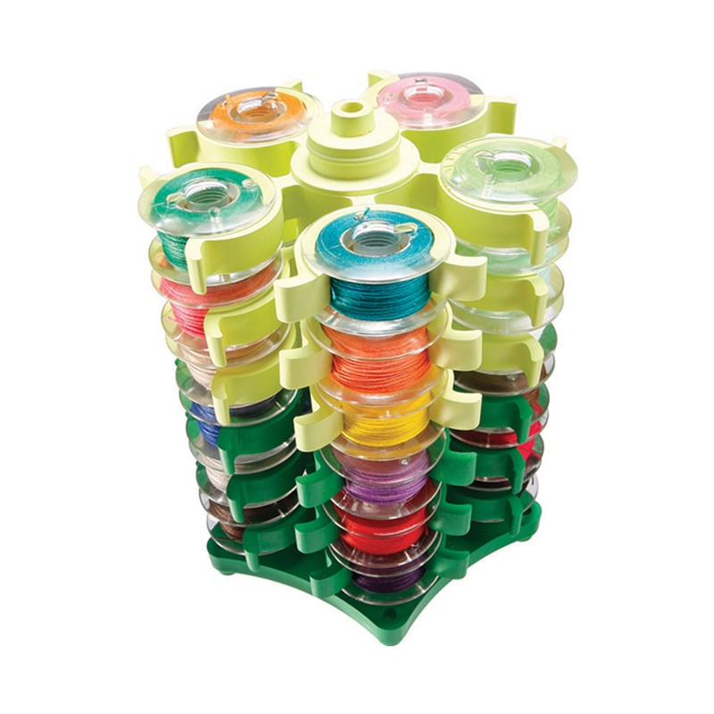 Une fois vos canettes achetées, pensez à les ranger avec la méthode qui vous convient le mieux : porte-canettes à fixer à la bobine, boîte de rangement transparente ou tour de canettes modulable !