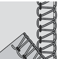 Il s’agit d’un surjet plat. Pour effectuer ce point, il faut enlever le couteau. Il permet d’assembler deux morceaux de tissus pour un résultat purement décoratif.