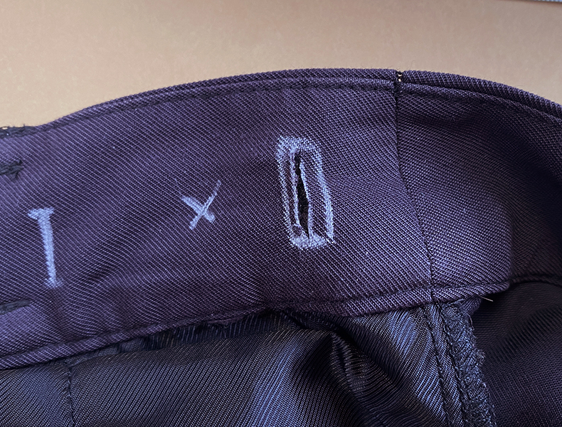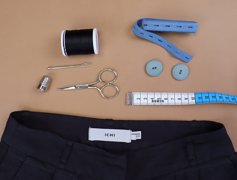 • Observez la structure de la ceinture du pantalon, pour vérifier qu’il y a l’espace nécessaire pour passer l’élastique et la créer ceinture élastique ajustable.