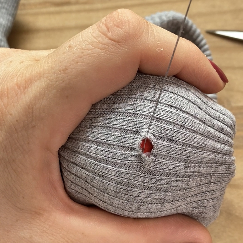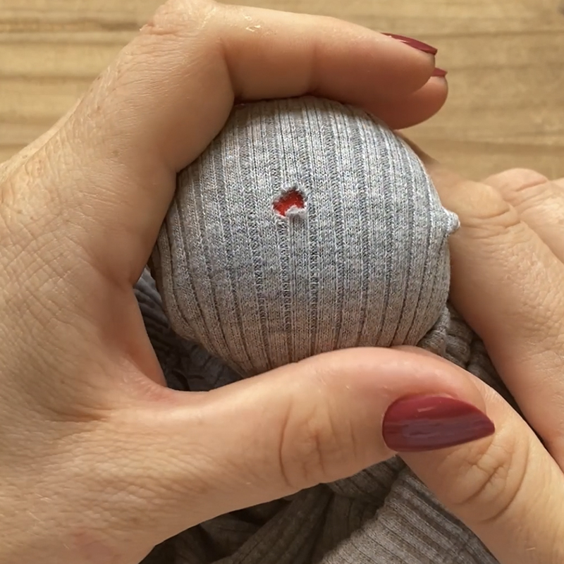 Retourner le vêtement et placez le trou sur un œuf ou un champignon à repriser en tirant légèrement pour ouvrir le trou. Couper délicatement les fils qui débordent avec des ciseaux aiguisés.