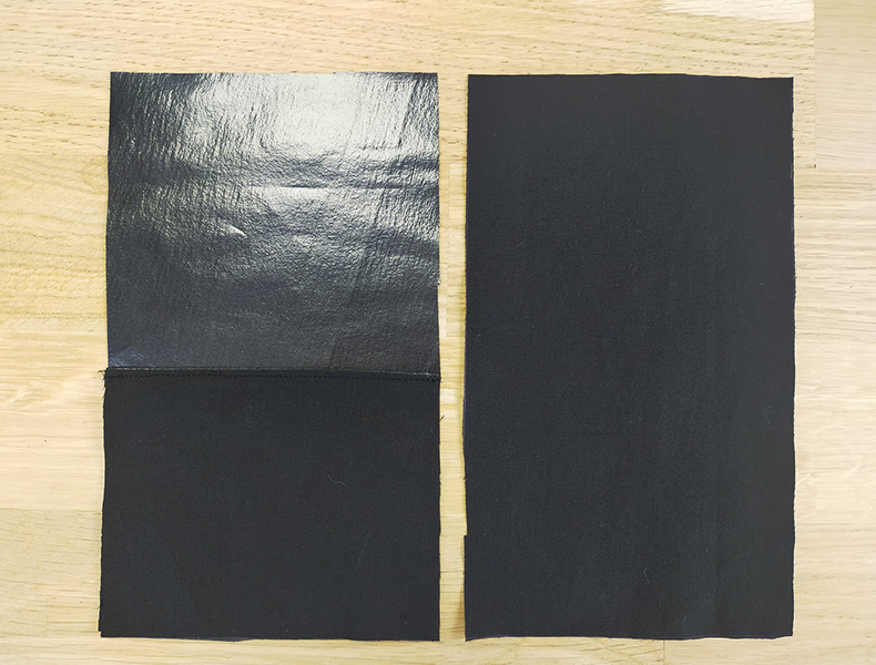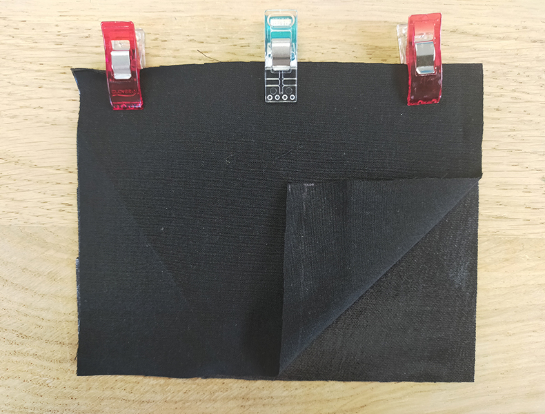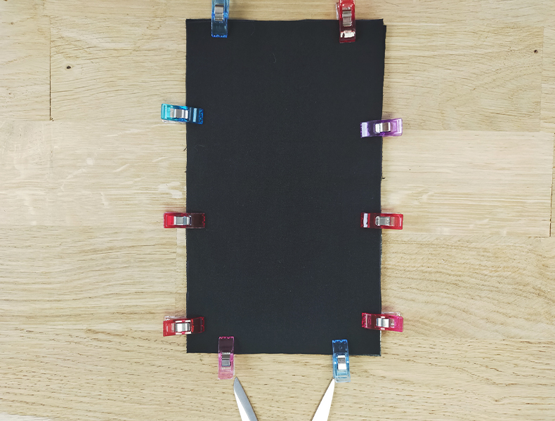 Assemblez, endroit contre endroit, vos deux petits rectangles (coton et PUL) sur une des longueurs. Épinglez.