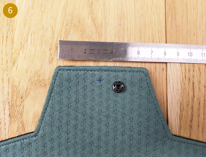 Vous allez coudre la partie femelle de la pression sur un côté du Zorb. Marquez au stylo frixion le repère de la pression (cf gabarit) puis cousez-la. La partie mâle de la pression sera cousue de la même façon sur le tissu coton du côté opposé à celui de la pression femelle.