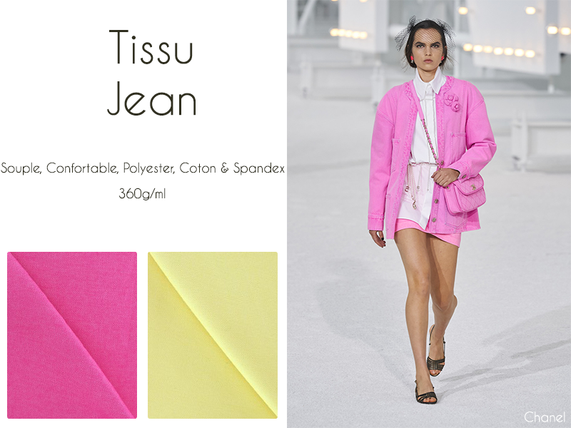 Cet intemporel donnera une allure chic à vos vestes et jupes. En petites quantités, le tissu tweed pourra être utilisé pour la réalisation de petits sacs à main ou en guise d’empiècement sur vos vestes en jean préférées.