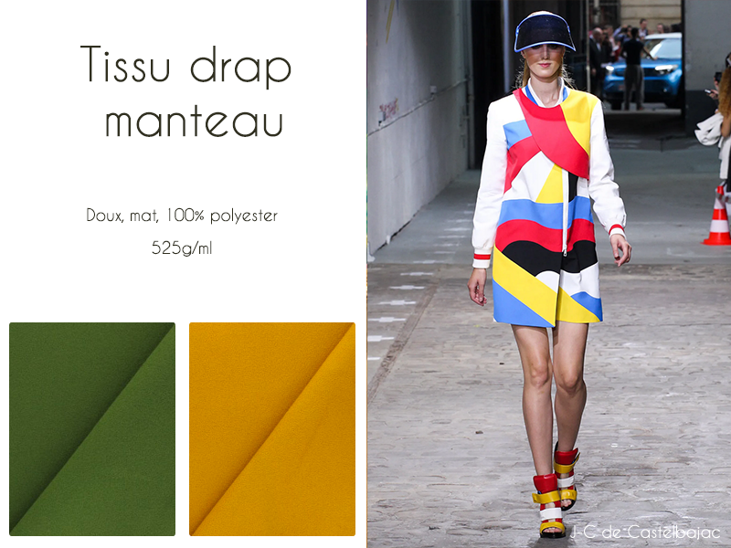 Enfin, le tissu drap manteau. On ne le présente plus, c’est le grand classique de l’hiver, il tient chaud et est disponible dans toutes les nuances que vous souhaitez. Mais cette année, exit le manteau uni, on patche on patche ! On mélange les couleurs que l’on aime et on créé des motifs, ou un jeu de carreaux pour un résultat unique !