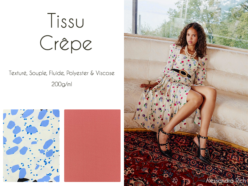 Dans la famille des tissus que l’on aime travailler pour de grandes occasions ou pour se sentir bien dans des vêtements élégants, on demande le tissu crêpe. Ce tissu plus ou moins texturé, plus ou moins opaque donne un rendu chic instantané à vos pièces. On opte pour sa version à doux motifs … Tellement bucolique !