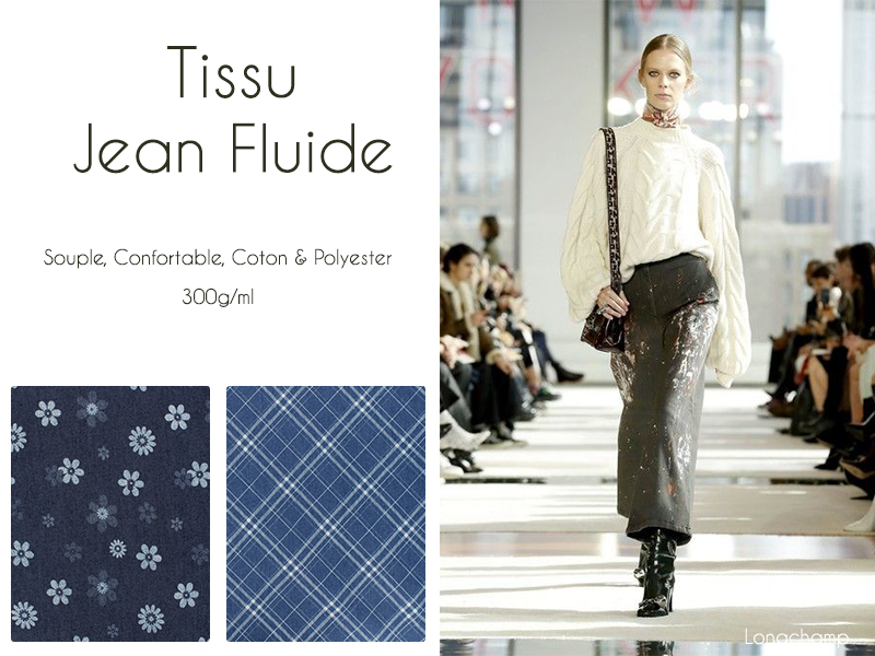 Enfin, le jean, toujours présent sur les défilés, se pare de couleurs, d’imprimés, ou s’assemble à d’autres coloris. Qui a dit que le jean bleu était ennuyeux ? Cette saison, il devient fantaisie, toutes les coutures sont permises !