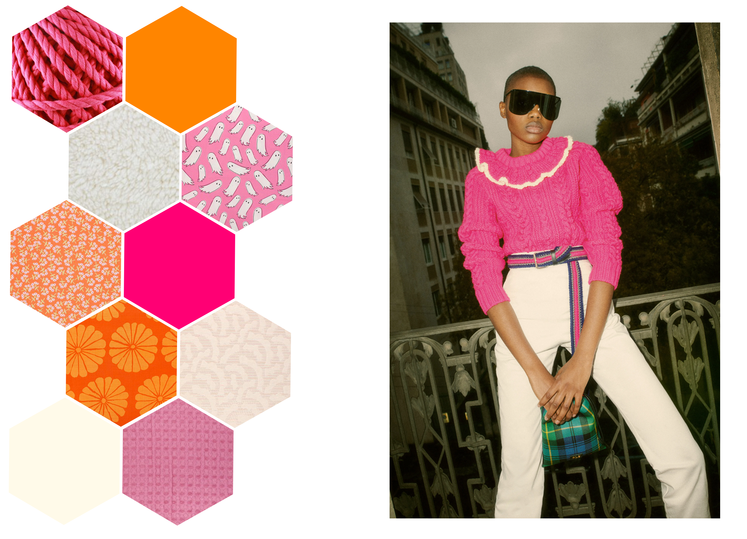 Pour se blottir dans la thématique Hygge Vitaminé, on demande la maille Mila. Avec son aspect tricoté, elle donne à vos création, une impression de tricoté main. À vous les maxi robes comme sur le défilé Chloé.