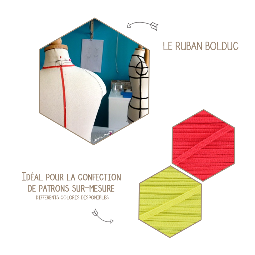 Très utilisé par les couturières et les modélistes pour confectionner des patrons sur mesure, le bolduc est un ruban que l’on vient positionner sur les mannequins avec soin et précision.