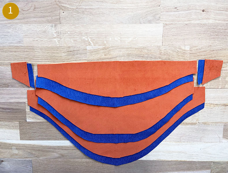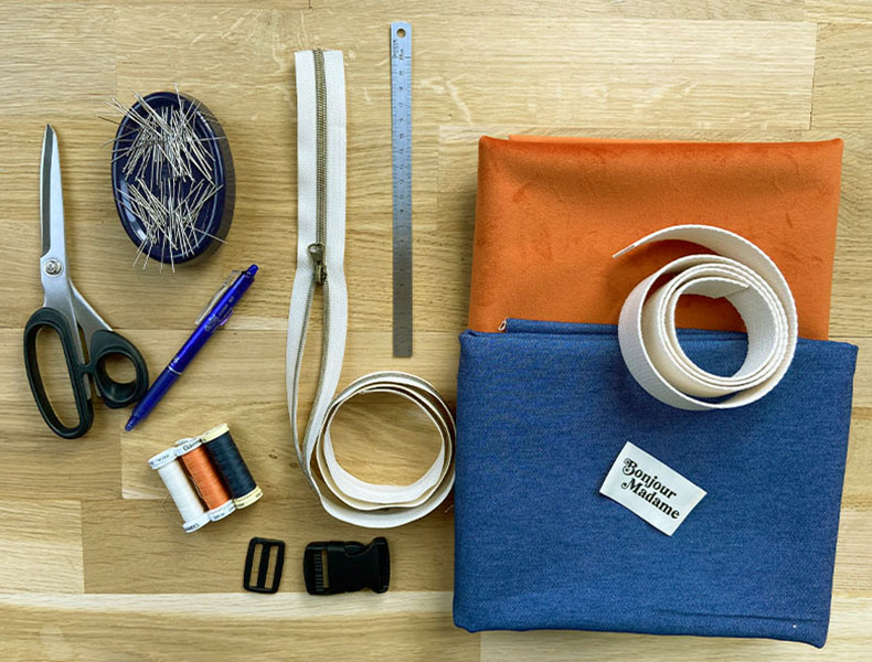 Découpez toutes les pièces de votre banane et rassemblez la mercerie nécessaire. Les marges de couture sont incluses dans le patron.