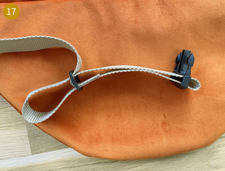 9. Merci beaucoup pour ce tuto. J’ai pris beaucoup de plaisir à coudre la version xxl après plusieurs mois sans avoir touché à ma MAC. Seul bémol la pause de la sangle de réglage je n’ai pas réussi j’ai bidouillé mais j’aurais préféré pouvoir agrandir ma sangle et être plus à l’aise en portant la banane