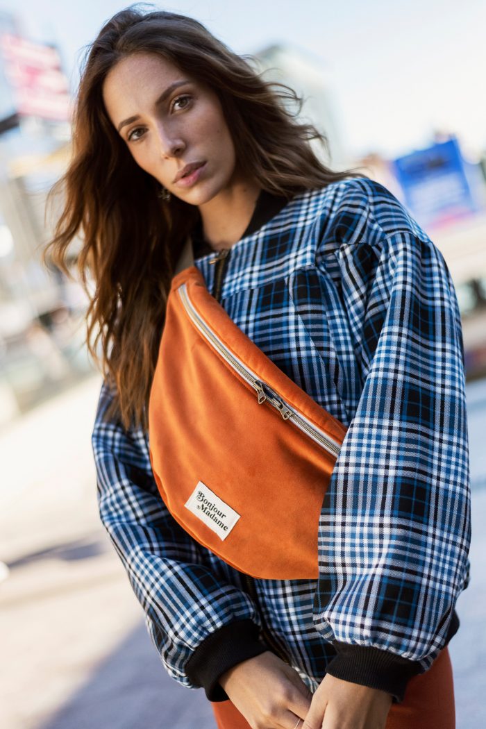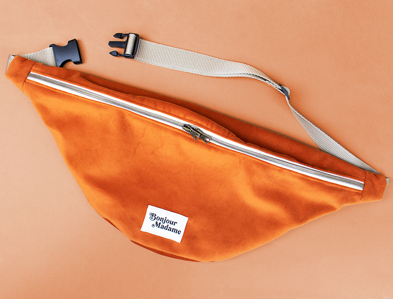 Le sac banane XXL est pensé pour être portée exclusivement en bandoulière, pour la taille classique, c’est comme vous voulez !