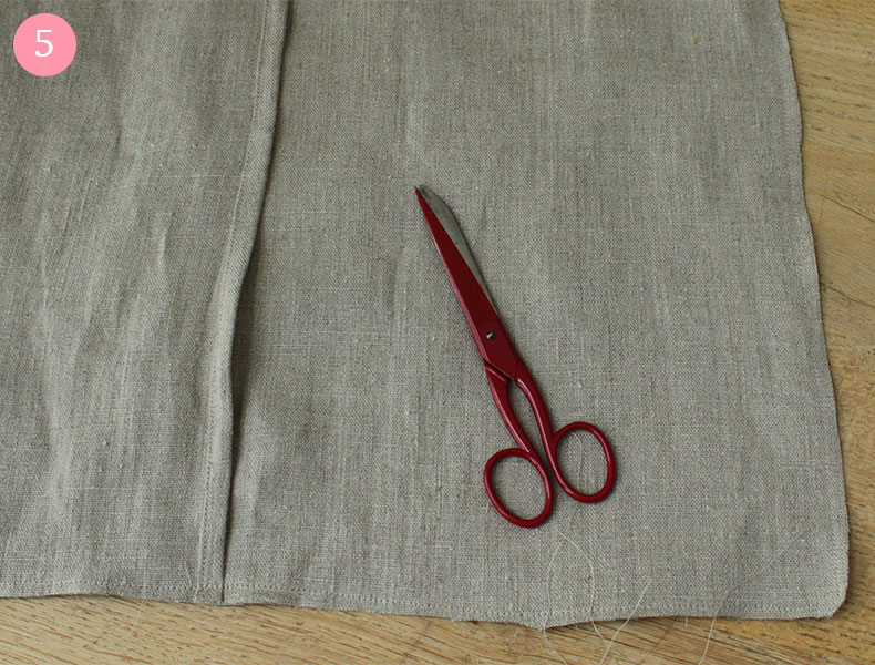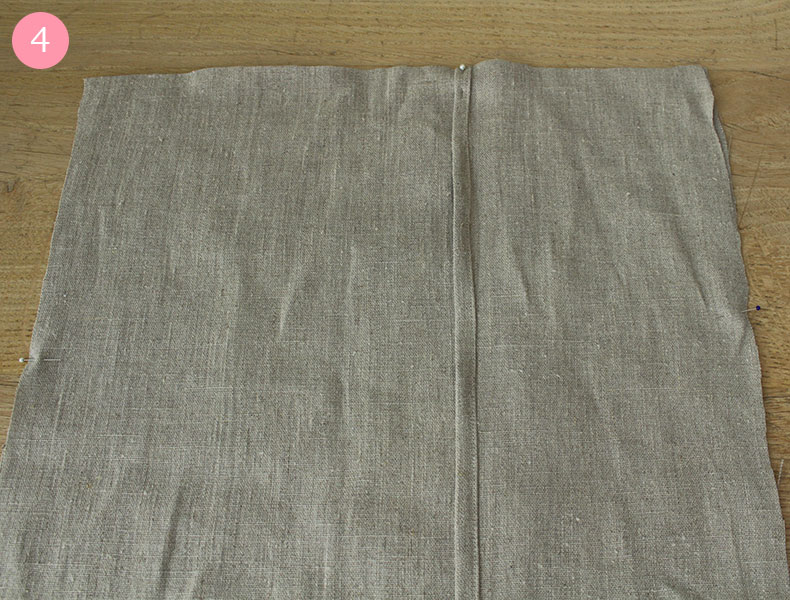 Positionnez endroit contre endroit le grand coupon de lin puis par dessus le petit. Ils doivent se chevaucher.