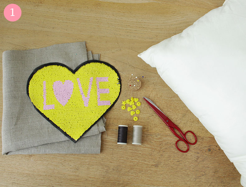 Pour réaliser votre coussin sequins réversible, il vous faudra :