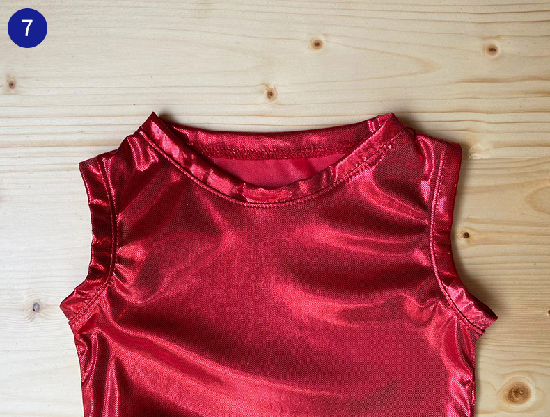 Remarque : si vous devez créer vos propres biais, vous aurez besoin de la dimension du tour d’encolure et du tour d’emmanchure. Aidez-vous du mètre ruban pour prendre ces mesures. Rajoutez 2 cm pour les marges de couture. La largeur du biais est de 3,5 cm. Ainsi par exemple, si votre encolure mesure 32 cm, vous devrez découper une pièce de 34 cm x 3,5 cm.