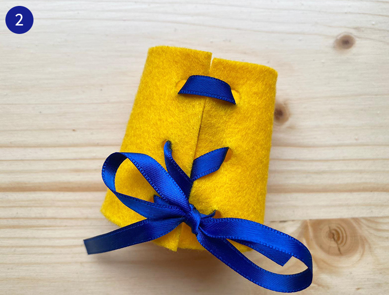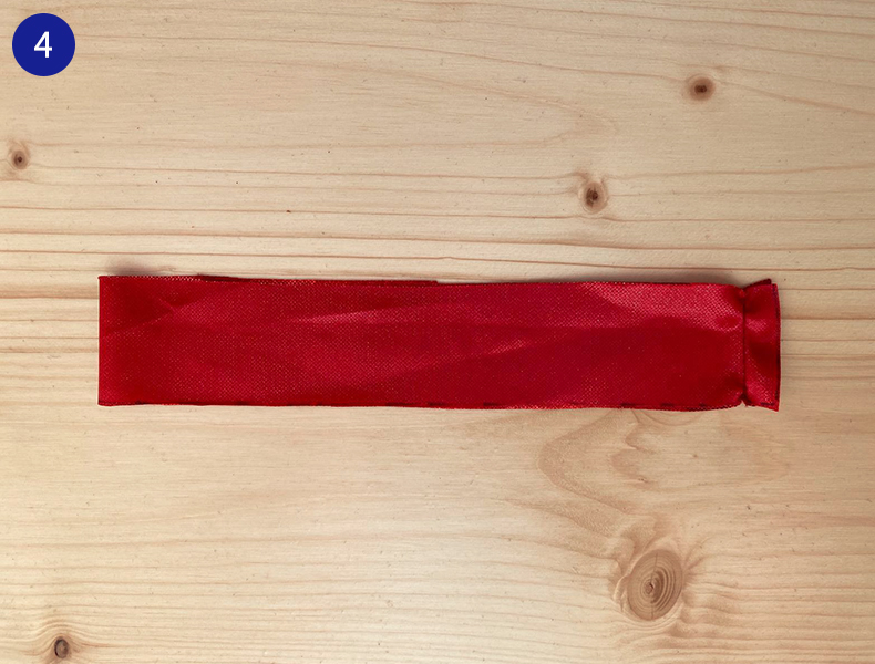 Coupez en deux votre ruban satin de 5 mm. Passez-le dans les trous.